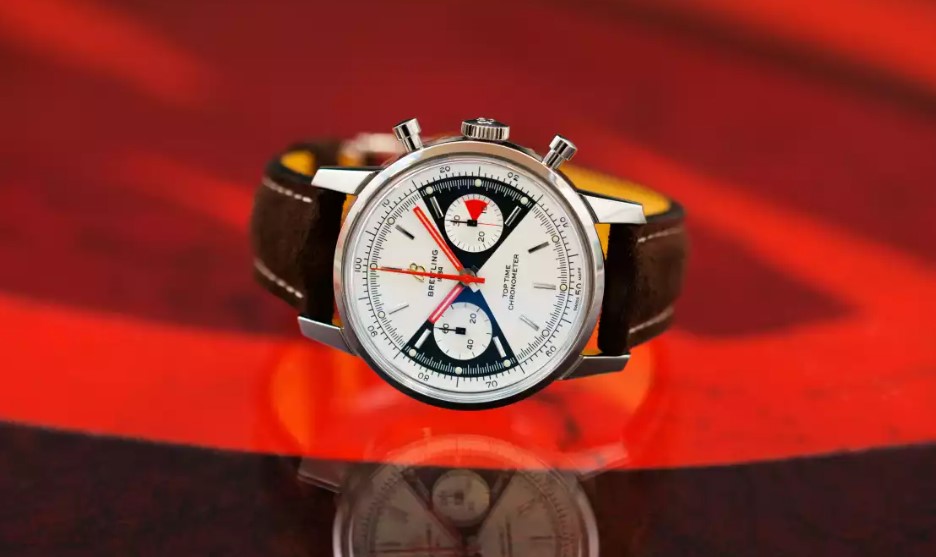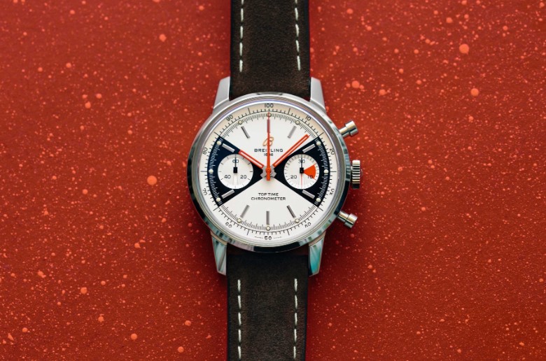 The Breitling Top Time watch sees the revival of a classic 1960s chronograph, featuring a distinctive “Zorro” motif dial. Breitling has been knocking it out the park with its heritage replica Breitling watches for sale over the last couple of years – and this is no exception.